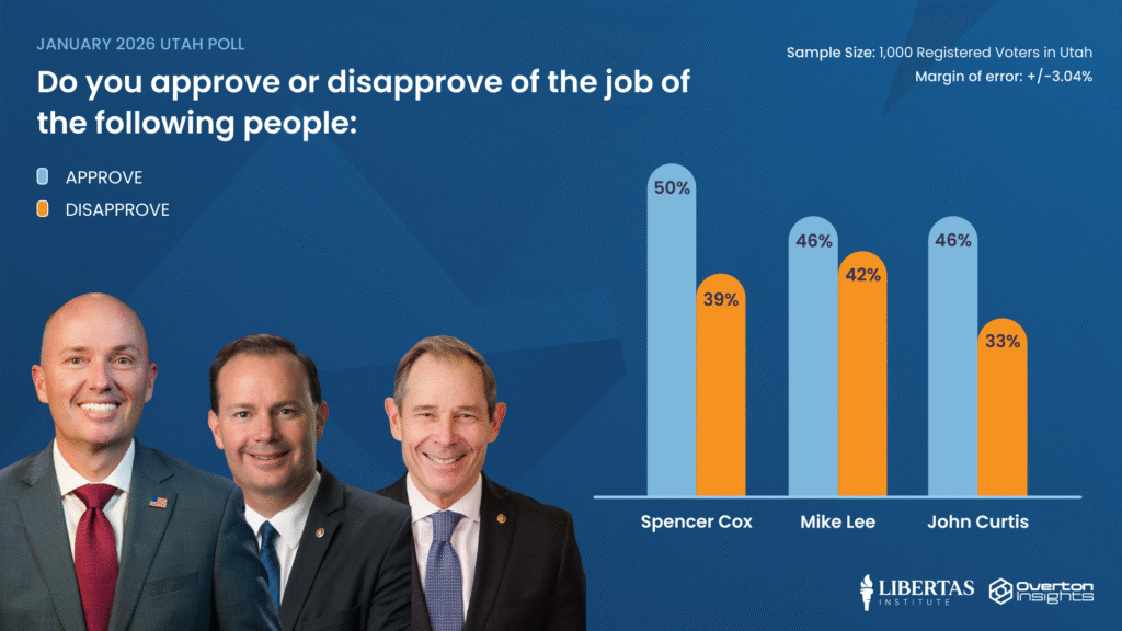 The January 2026 Utah poll examines voter opinions on state-level policy issues, such as licensing, privacy, and housing, along with culture, sports, and politician approval questions.