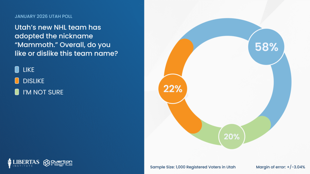 Utah’s new NHL team name “Mammoth” receives majority positive reception with 58% liking the name versus 22% disliking it, though 20% remain unsure