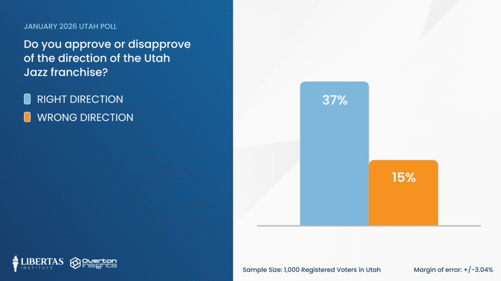 The direction of the Utah Jazz franchise draws surprisingly positive reviews with 37% approving while 15% disapprove, but a notable 33% say they don’t follow the Jazz at all.